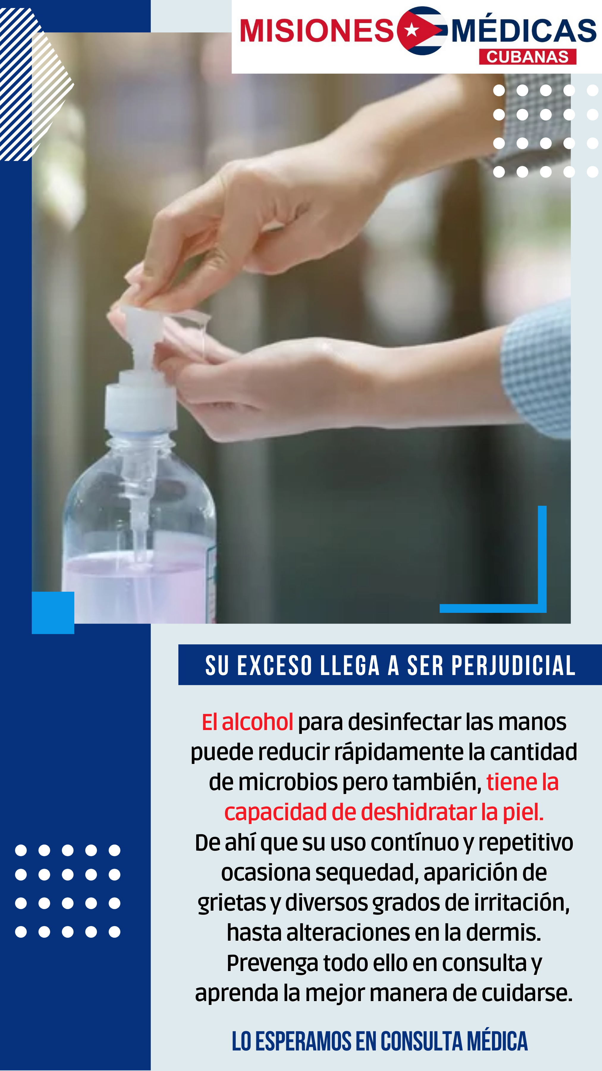 NO EXAGERE CON EL ALCOHOL EN SUS MANOS